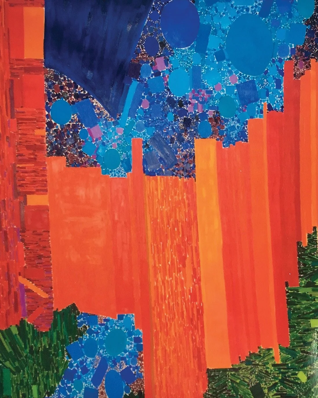 Some time after her marriage to the painter John Hultberg, the couple began summering on the rural Monhehgan Island off the Maine coast. There, Drexler sketched outdoors and, upon returning to New York, reimagined the sketches into colourful abstracted landscapes.